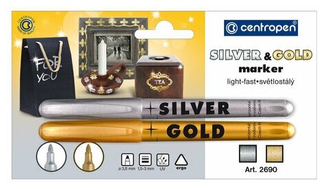 Маркер для декорирования серебряный CENTROPEN, круглый наконечник, 1,5-3 мм, 2690