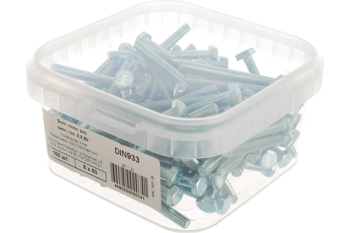 Купить Партнер DIN933 6x60 Болт Ш.г. Полн.рез. 8,8 ZN 100шт. - контейнер Партнер ФАС 1031 36