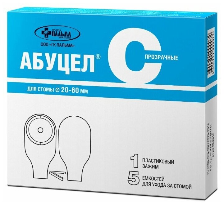 ГК «Пальма» Калоприёмники абуцел-с однокомпонентные, дренируемые, прозрачные, 20-60 мм, №5