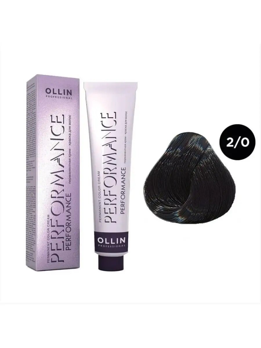 OLLIN, PERFORMANCE, Перманентная крем-краска №2/0, черный, 60 мл