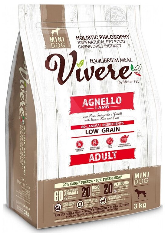Купить Vivere корм для собак малых пород, низкозерновой, ягненок 3 кг