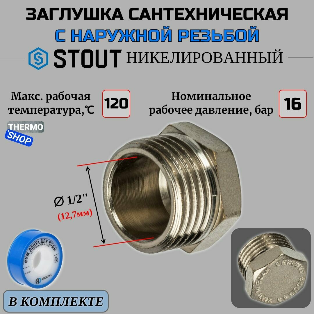 Заглушка НР никелированная 1/2 STOUT и Фум лента
