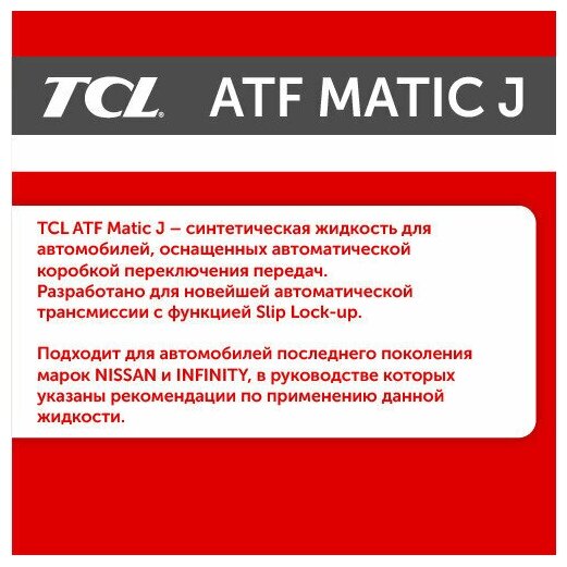 Жидкость для АКПП TCL ATF MATIC J, синтетическая, прозрачно-красная, 4л., арт. A004TYMJ