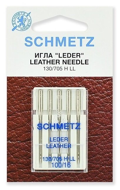Игла/иглы Schmetz Leather 130/705 H LL 100/16, серебристый, 5 шт.