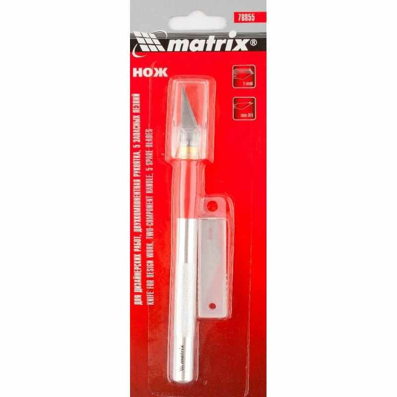 Нож для дизайнерских работ, двухкомпонентная рукоятка, 5 запасных лезвий Matrix (78855)