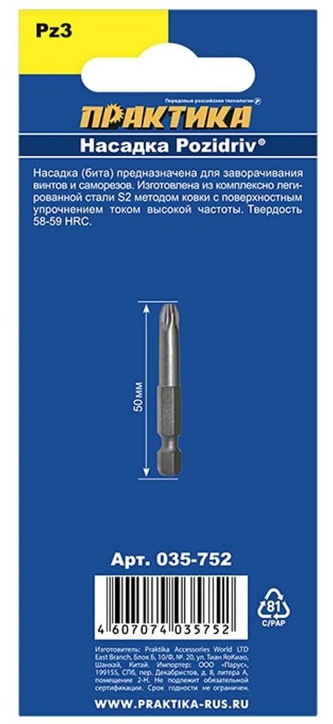 Бита РZ-3 Практика Профи РZ-3 х50 мм, 2 шт