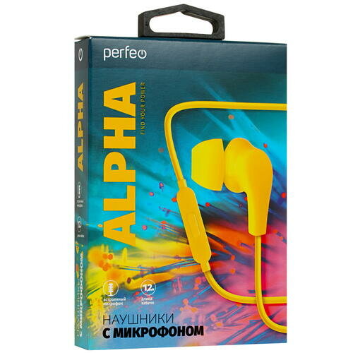 Наушники PERFEO PF_A4933 ALPHA проводные, вакуумные, 1,2м, желтый