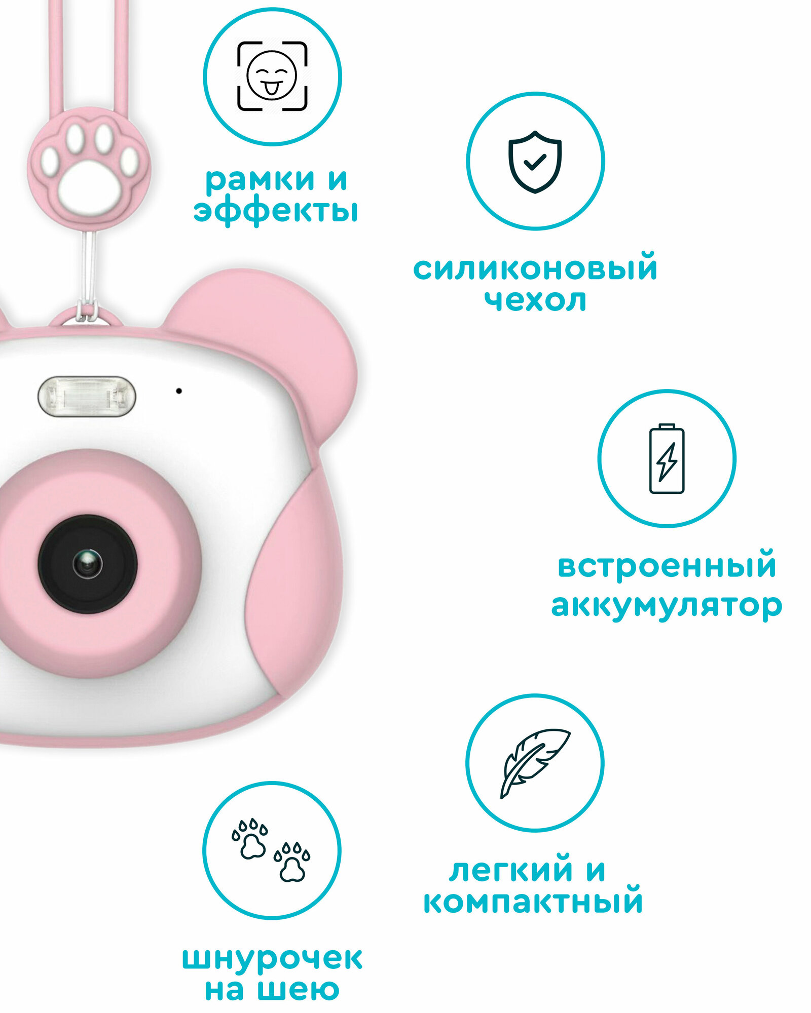 | Плюсы: | идеальный подарок для ребенка 3-7 лет, процесс увлекательный, фото, селфи, видео, сказки, музыка, озвучивание, комплименты, дизайн, шнурок, карта памяти в комплекте |