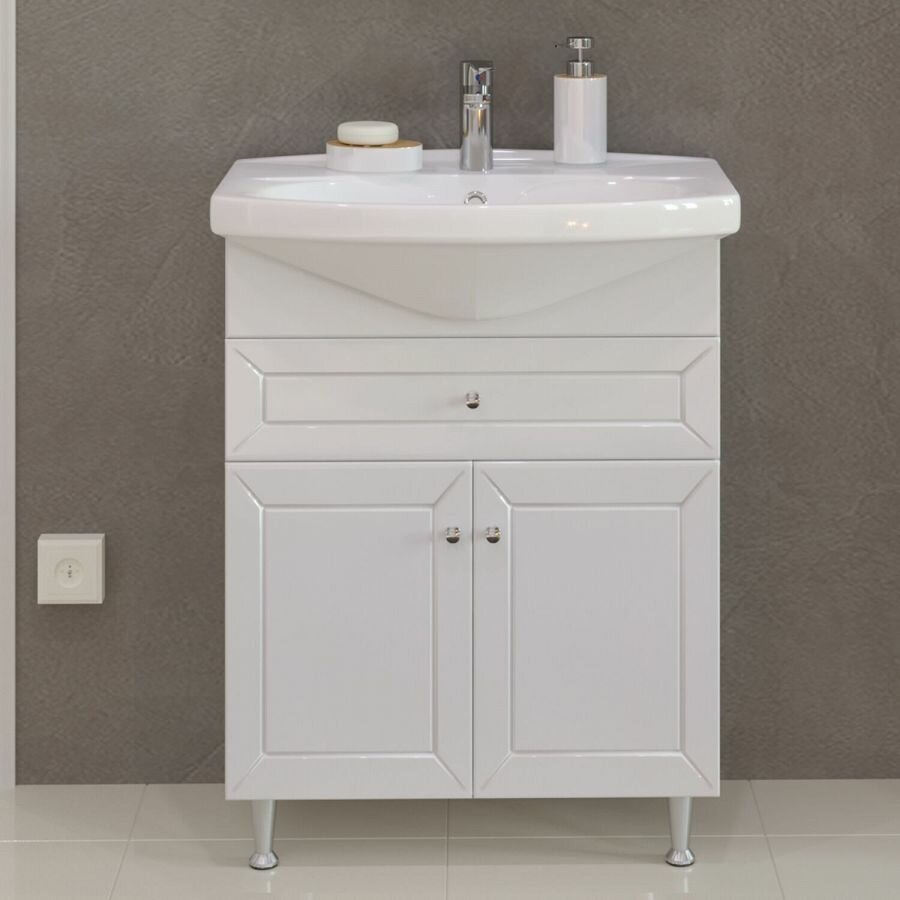 Купить Тумба напольная SanStar Бриз 65 с раковиной Новая Грань (комплект) для ванной комнаты, белая