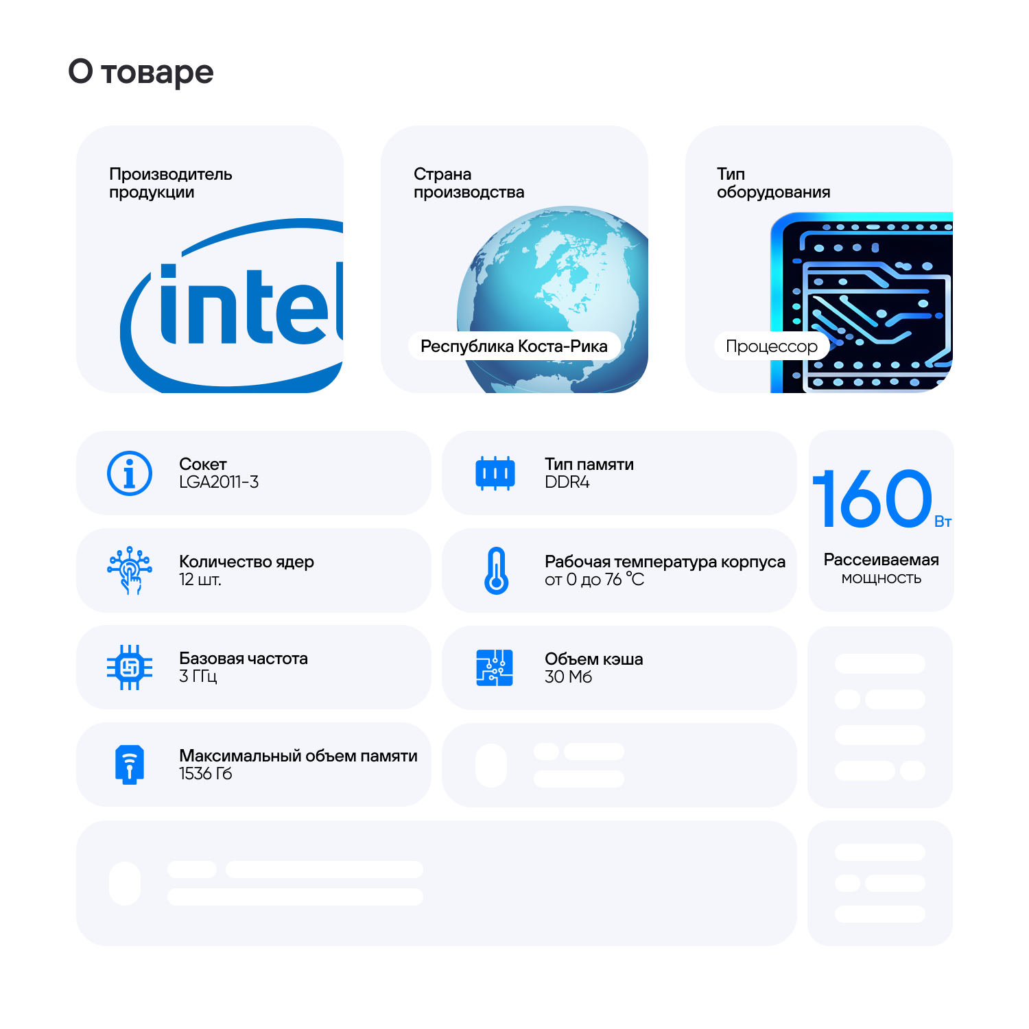 Процессор Xeon E5-2687Wv4 Processor (30M Cache, 3.0Ghz) S2011-3 tray интересное: