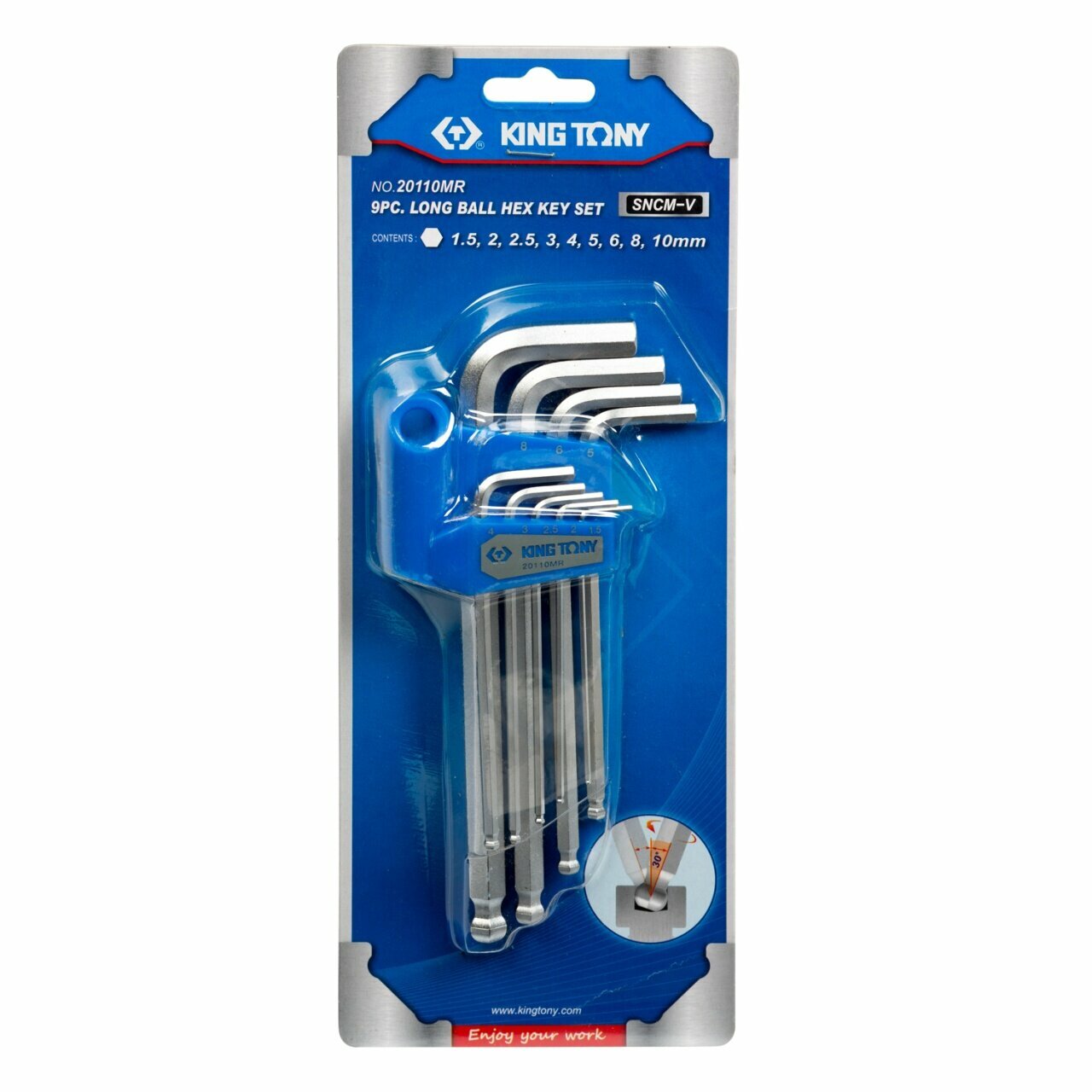 Набор Г-образных шестигранников 1,5-10 мм, длинные, с шаровым окончанием, 9 предметов KING TONY 20110MR