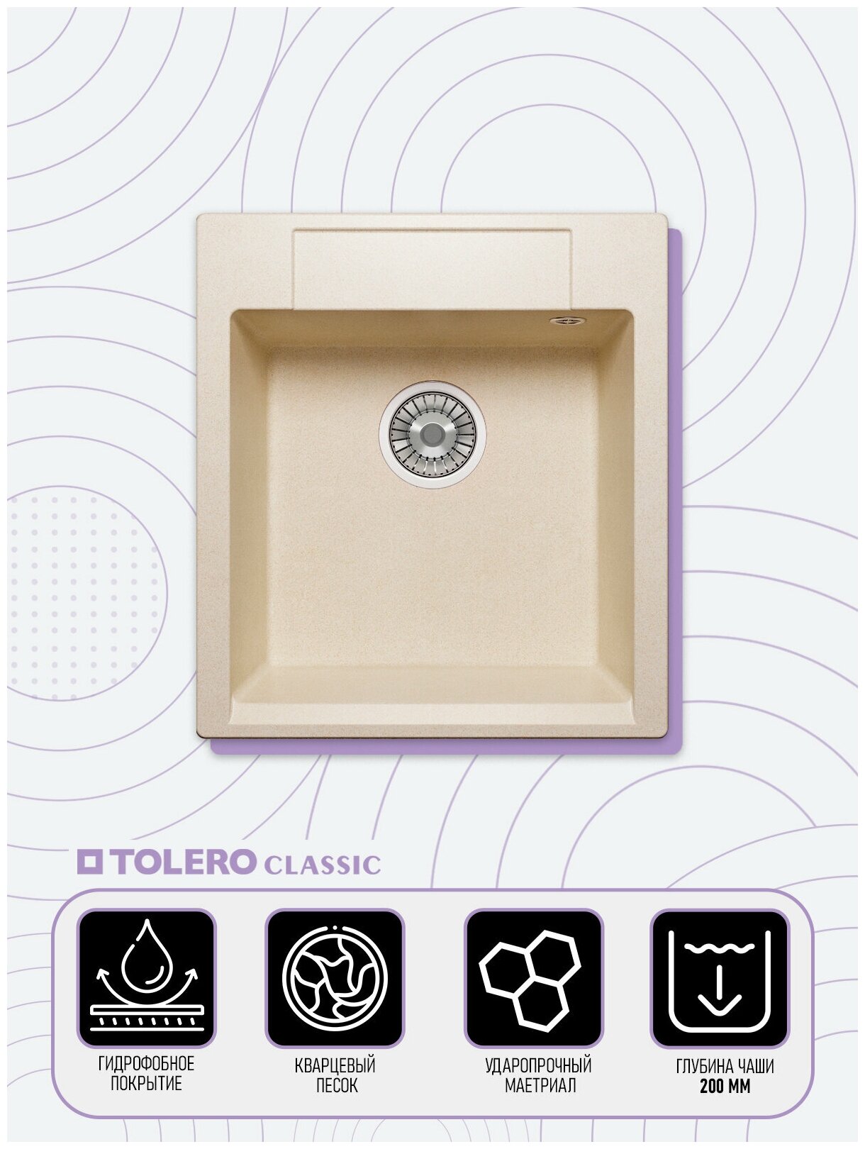 Купить Мойка для кухни TOLERO Classic R-117 каменная врезная квадратная, необорачиваемая. Кварц (№102 Сафари)
