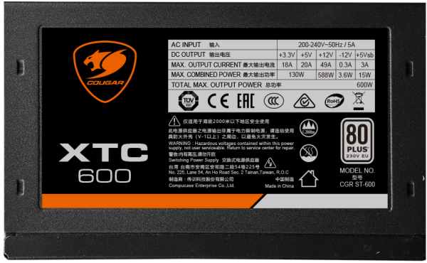 Блок питания Cougar XTC600, 600W, 80+ Standart, OEM