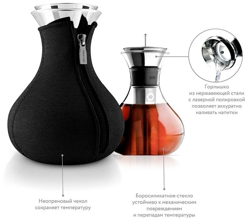 Чайник заварочный Tea maker в неопреновом текстурном чехле, 1 л, черный интересное: