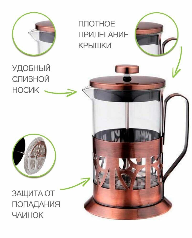 Френч-пресс "трюфель" 800мл. нержавеющая сталь, боросиликатное стекло, медь интересное: