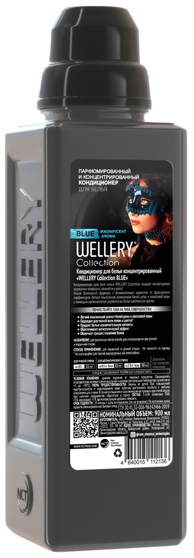 Wellery Collection BLUE парфюмированный кондиционер для белья,аромат белой розы и кокосовой воды 900мл.