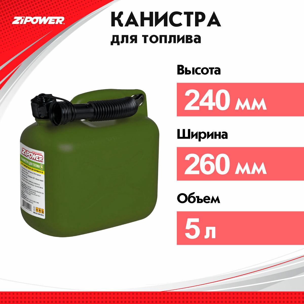 Канистра для топлива оливковая ZIPOWER 5л. PM4292 ZIPOWER PM4292 | цена за 1 шт