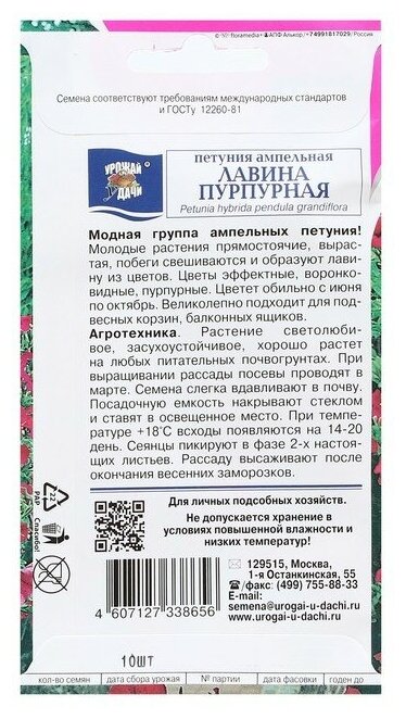 Семена Петуния ампельная Лавина Пурпурная F1 10шт на рассаду в домашних условиях интересное: