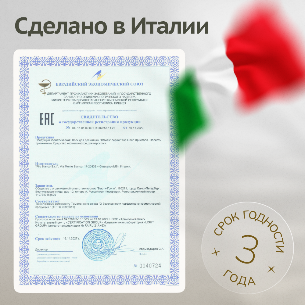 ITALWAX Пленочный горячий премиум воск в гранулах для депиляции лица и тела Top Line Кристалл , Синтетический полимерный воск для деликатных зон бикини 750 гр италвакс