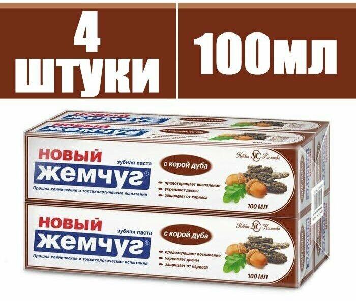 Новый Жемчуг Зубная паста с корой дуба для десен с фтором, 100 мл, 4 шт