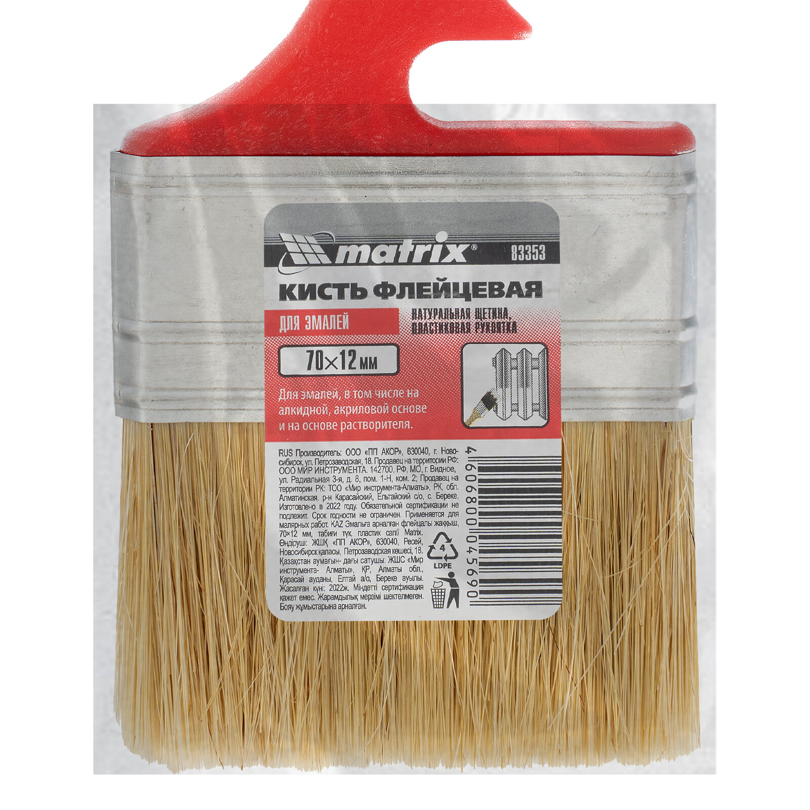Кисть флейцевая для эмалей, 70 x 12 мм, натуральная щетина, пластиковая рукоятка, Matrix 83353