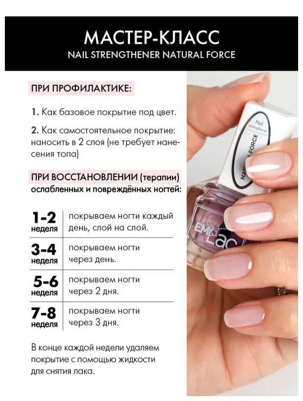 E.Mi, Средство для укрепления ногтей Nail Strengthener Natural Force, 9 мл