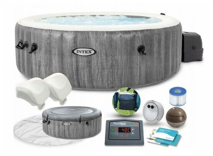 Надувное джакузи Intex PureSpa Bubble Therapy+Hard Water System Greywood Deluxe, 196х71 см, 28440