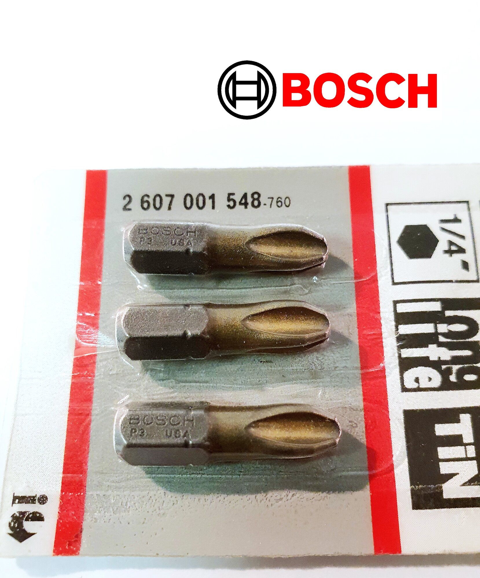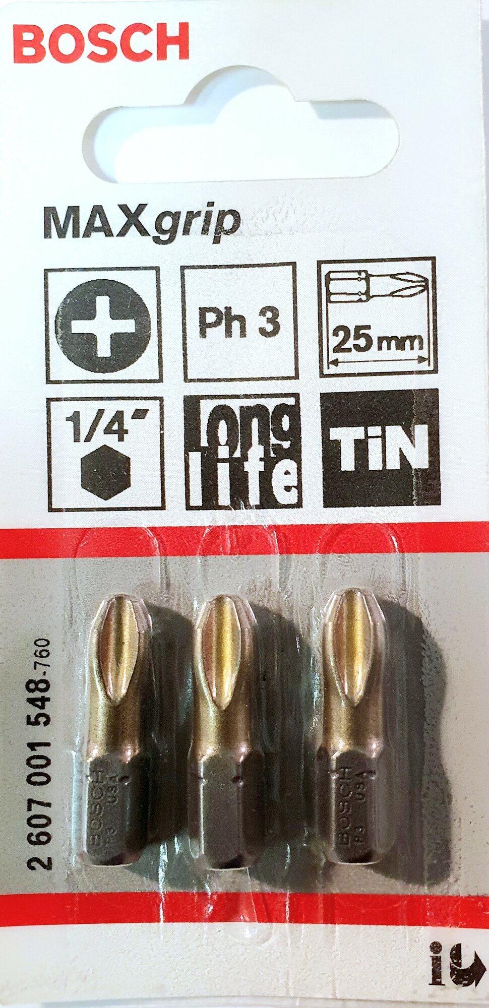 Биты для шуруповертов (3шт) РН3 25мм Bosch MaxGrip TIN 2607001548 с титановым покрытием