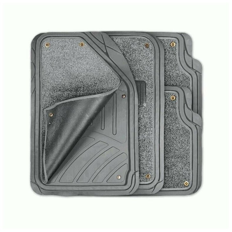 Коврики автомобильные AUTOPROFI, универсальные, отстёгивающийся ковролин, компл. из 4 предм., ПВХ, MAT-420GY 1шт