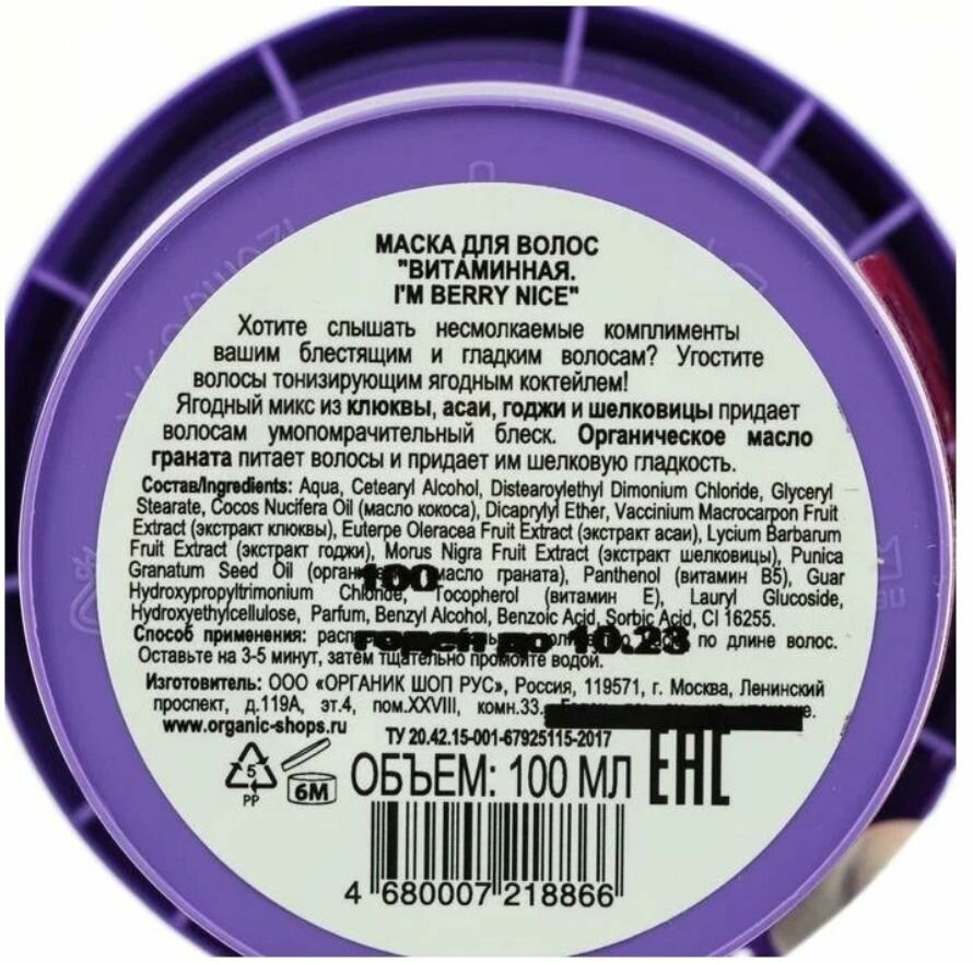 Купить Organic Kitchen Маска для волос Витаминная I'm Berry Nice, 100 мл