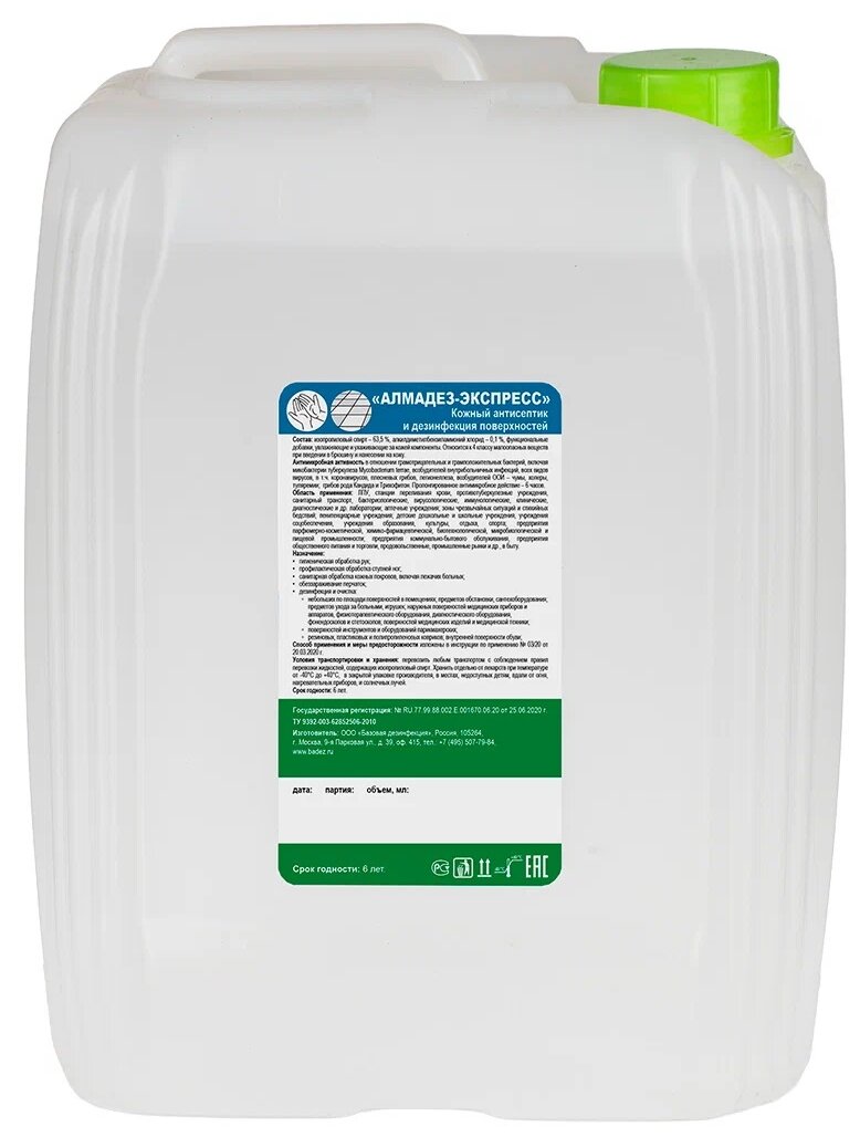 Антисептик кожный"Алмадез-Экспресс", дезинфекция поверхностей, 5 л Алмадез 4887507 .