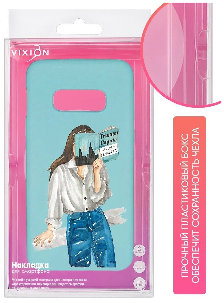 Купить Чехол (накладка) Vixion TPU для Samsung Galaxy S10e / Самсунг Галакси С10е сподкладкой (голубой) Девушка с книгой
