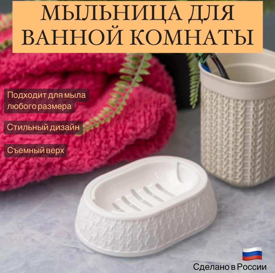 Мыльница "Вязаное плетение" белый М6887 Пластмасса альтернатива