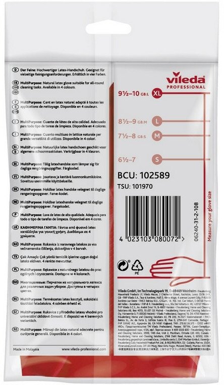Перчатки латексны, Vileda Professional, Виледа MultiPurpose Многоцелевые, размер М, 1 пара, красные