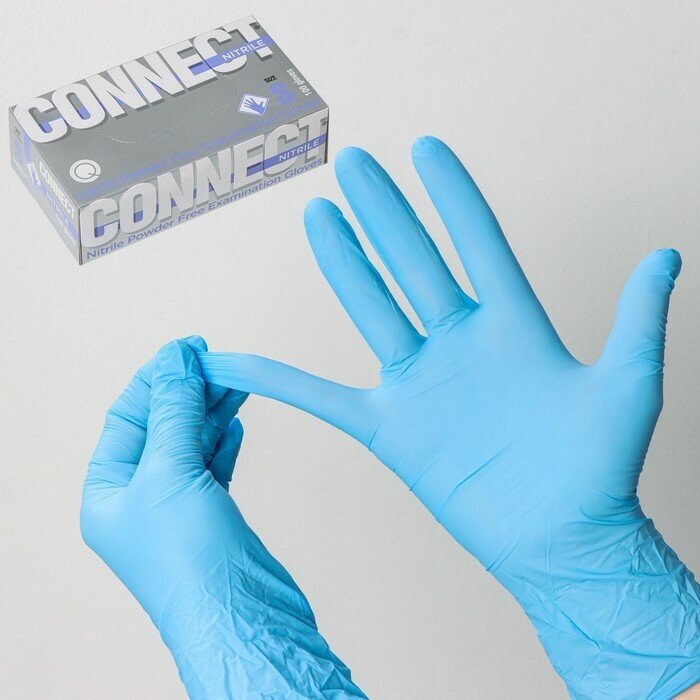 Connect Перчатки нитриловые «Nitrile», смотровые, нестерильные, размер L, 100 шт/уп (50 пар), цвет голубой