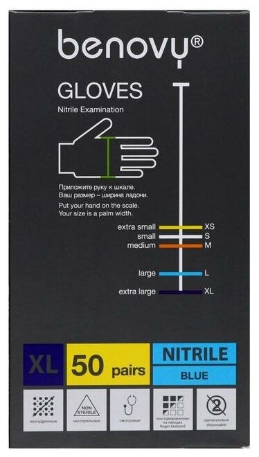 Купить Перчатки медицинские Benvoy, нитриловые, нестерильные, неопудренные, голубые, размер XL, 50 пар
