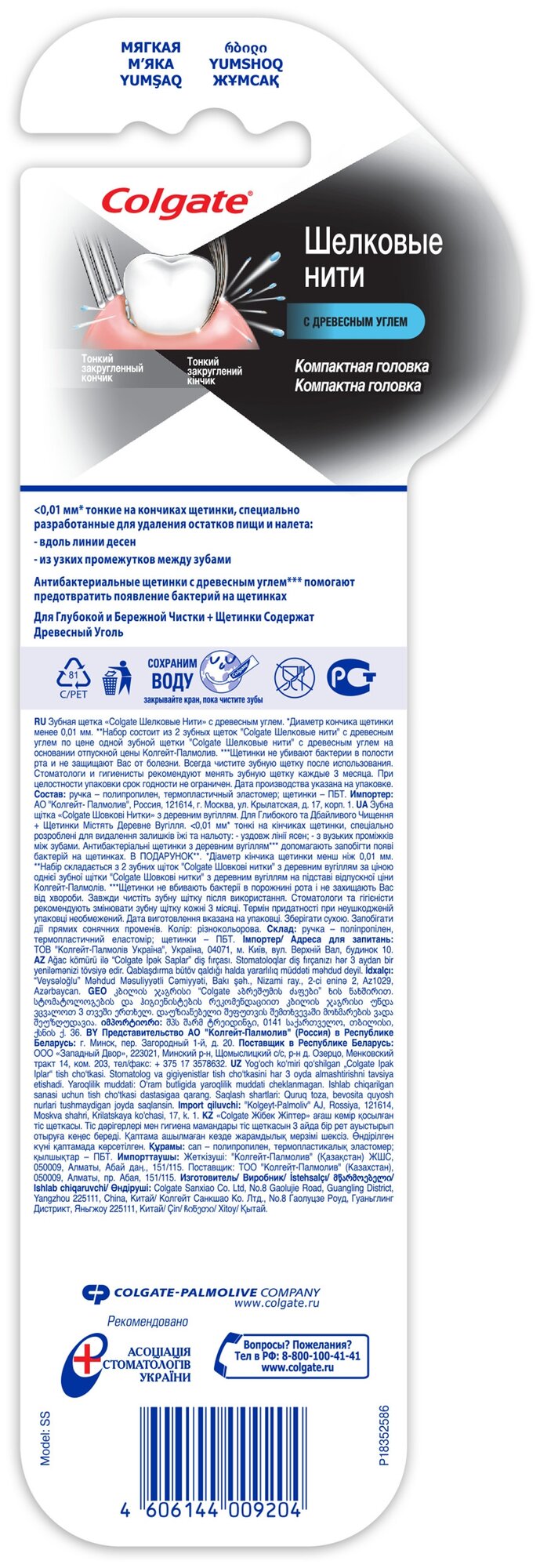 СохранитьЗубная щетка Colgate Шелковые Нити с древесным углем для здоровья десен, мягкая, черная, промоупаковка 1+1 в подарок интересное: