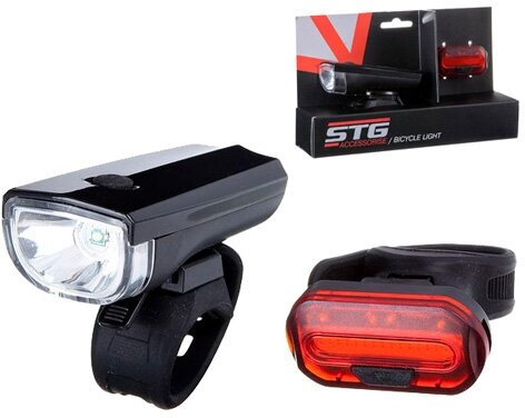 Комплект фонарей велосипедных STG (Комплект фонарей велосипедныхSTG,JY7024+6068T,задний+передний,резин.Хомут.Бат:(2*CR2032)(нет в комл))