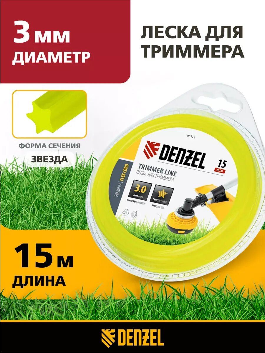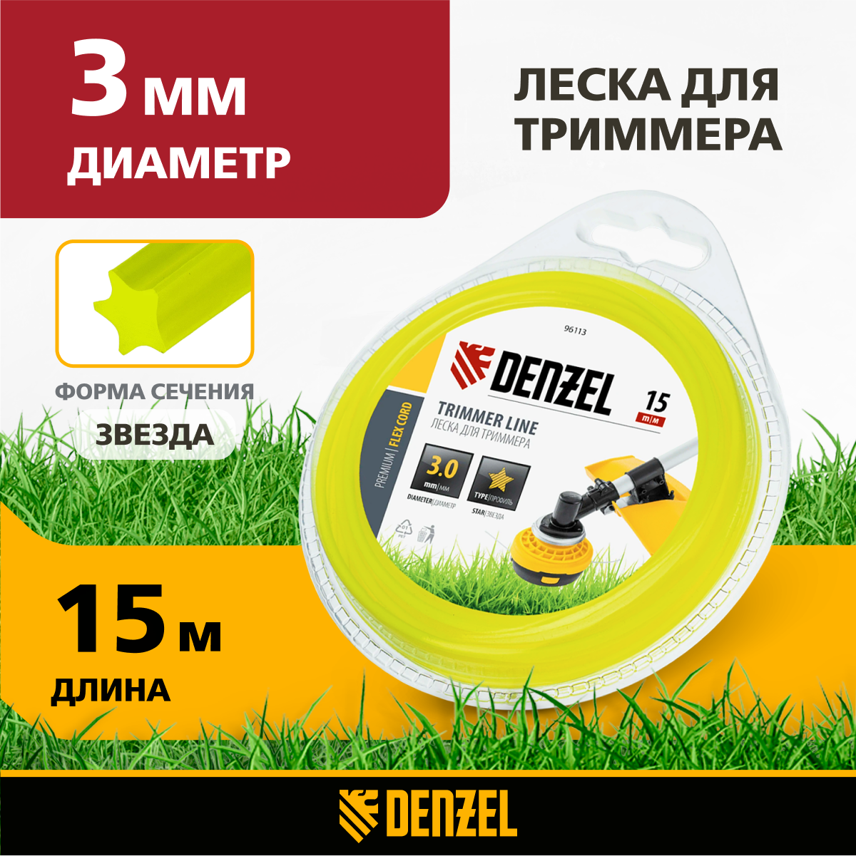 DENZEL 96113 Леска для триммера, звезда 3 мм x15 м, блистер Flexcord Denzel 96113