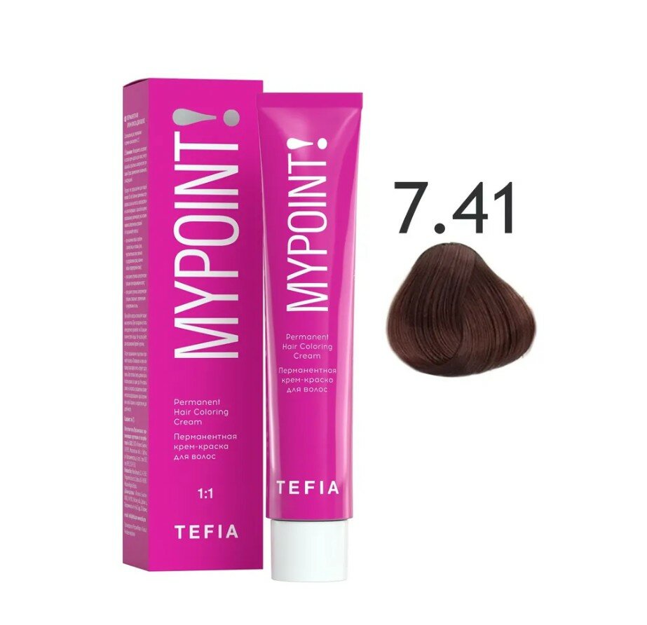 Tefia Mypoint Color перманентная крем-краска для волос, 7.41 блондин медно-пепельный, 60 мл