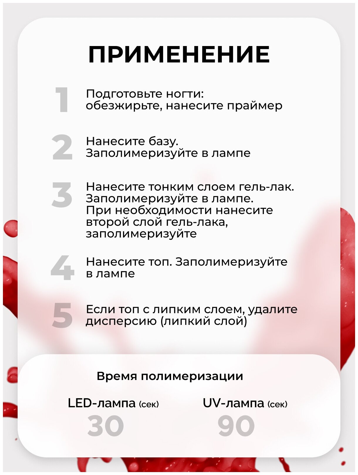 Serebro гель лак для ногтей красный "Королевский бал" для маникюра и педикюра №178, 11 мл