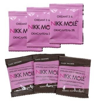 Nikk Mole Краска для бровей и ресниц 3х5 мл + оксид 3% 3х5 мл (саше) темно-коричневый