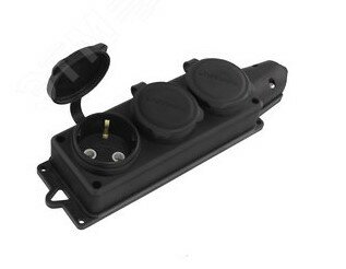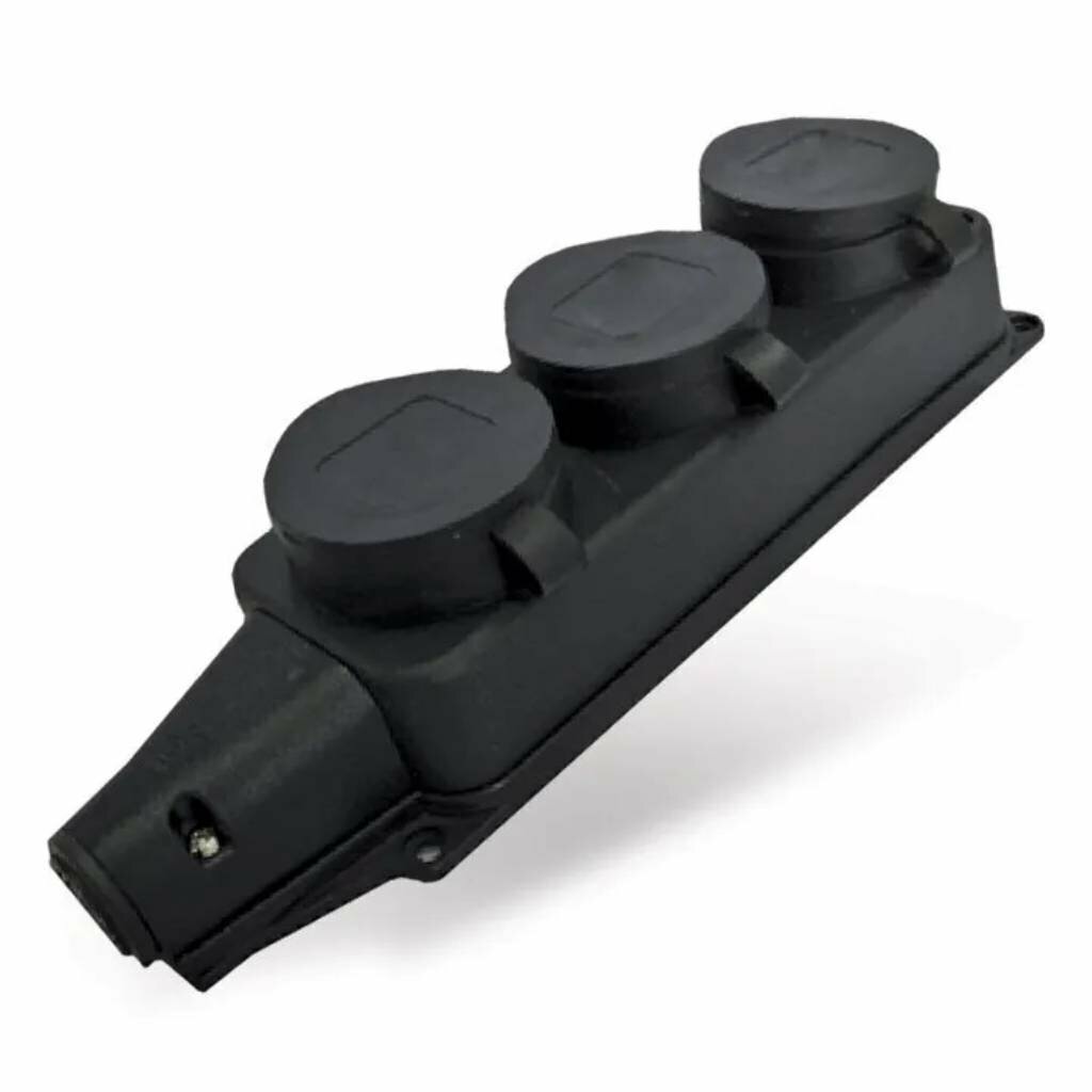 Колодка розеточная 3 гнезда, с заземлением, 16 А, 250 В, с заглушкой, 1-фазная, IP44, каучук, черный, UNIVersal, Компакт