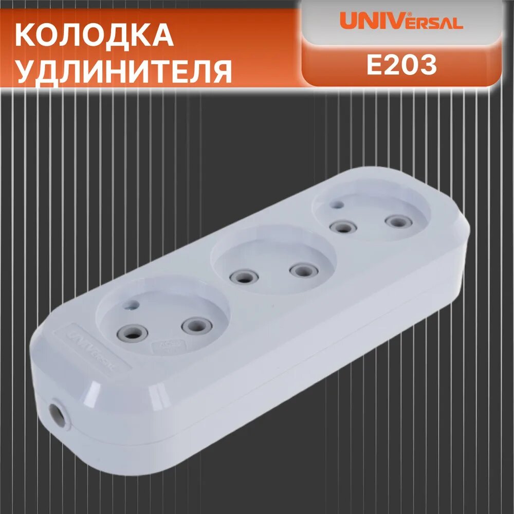 Колодка удлинителя 3-м АВС-пл. без заземл., UNIVERSAL E203 (1 шт.)