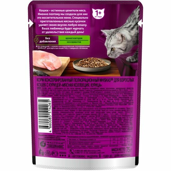 Whiskas Влажный корм «Мясная коллекция» для кошек, с курицей, 75г 1023330110244945, 0,075 кг, 53682