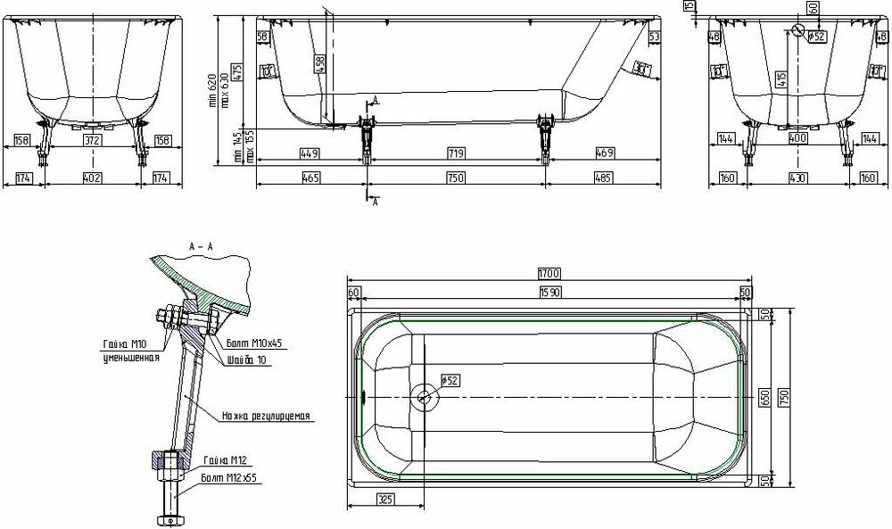 Глубокая и вместительная 170х75(внутренний размер ванны 65 см) очень удобная для людей с большим весом и габаритами, не стесняет движения, не шатается, не прогибается. Единственное пожелание заводу сделать ее более современной -сделать декоративную окраску наружной части ванны и предложить красивые ножки, или накладки декоративные. |