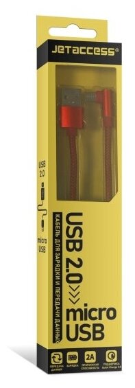 Кабель USB 2.0 - microUSB Jet.A JA-DC25 угловой 2A QC3.0 1м в оплетке черный
