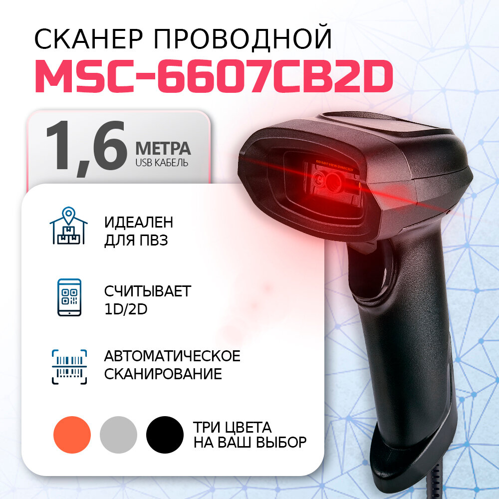 Сканер штрих-кода проводной МойPOS MSC-6607CB2D Black для маркировки и ЕГАИС