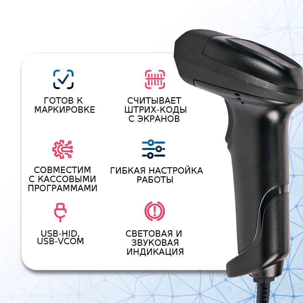 | Плюсы: | Отлично сканирует штрих-кода всех типов |