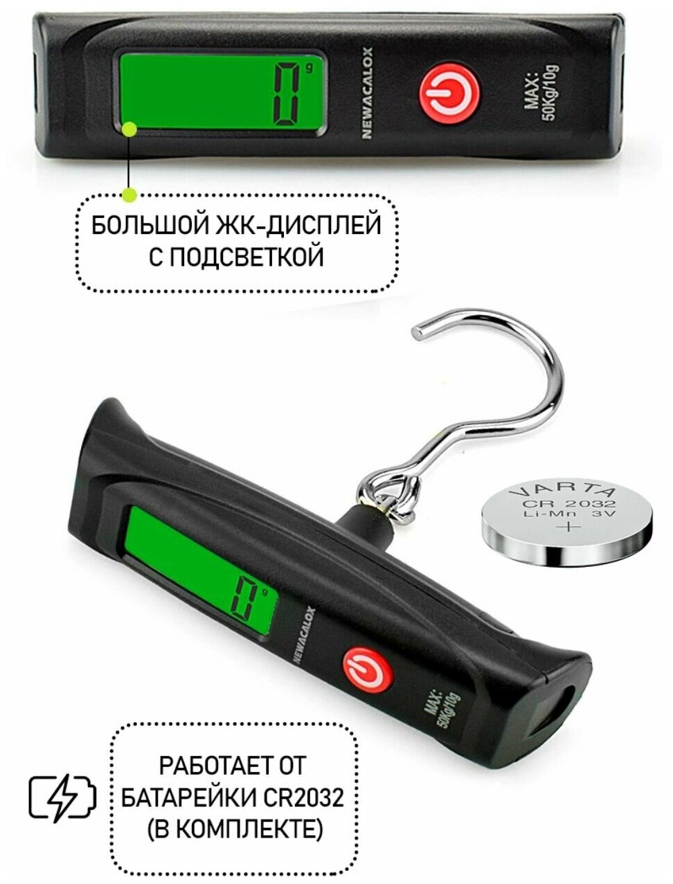 Весы / безмен электронный/ WH-A12 50кг цвет - черный интересное: